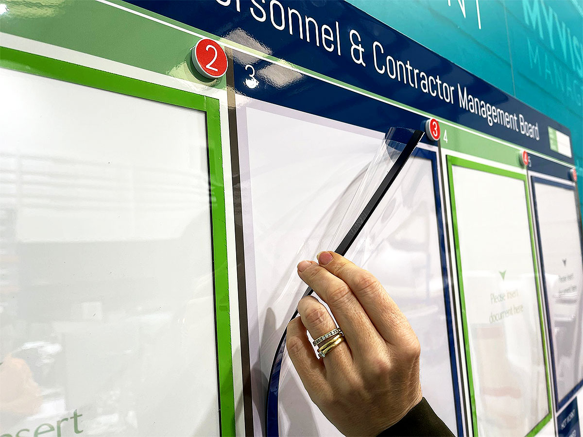 Magnetic document holders from My Visual Management are made to order because they are customised. First of all, they hold exactly the information you need. Likewise, they are available in exactly the size you need. As a result they fit perfectly in your work area and therefore close to the process at hand.