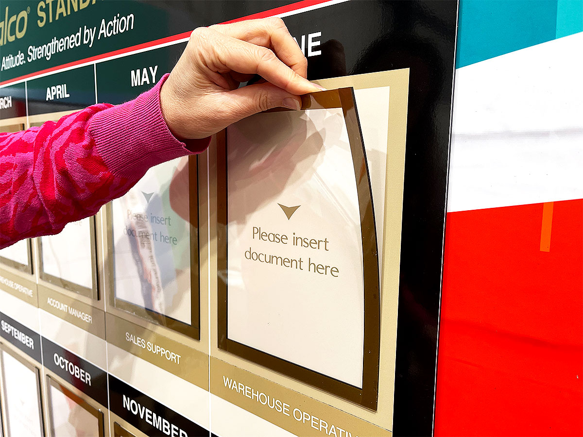 So, we can supply magnetic document holders to show status in a range of colours. Ultimately, to suit your needs.