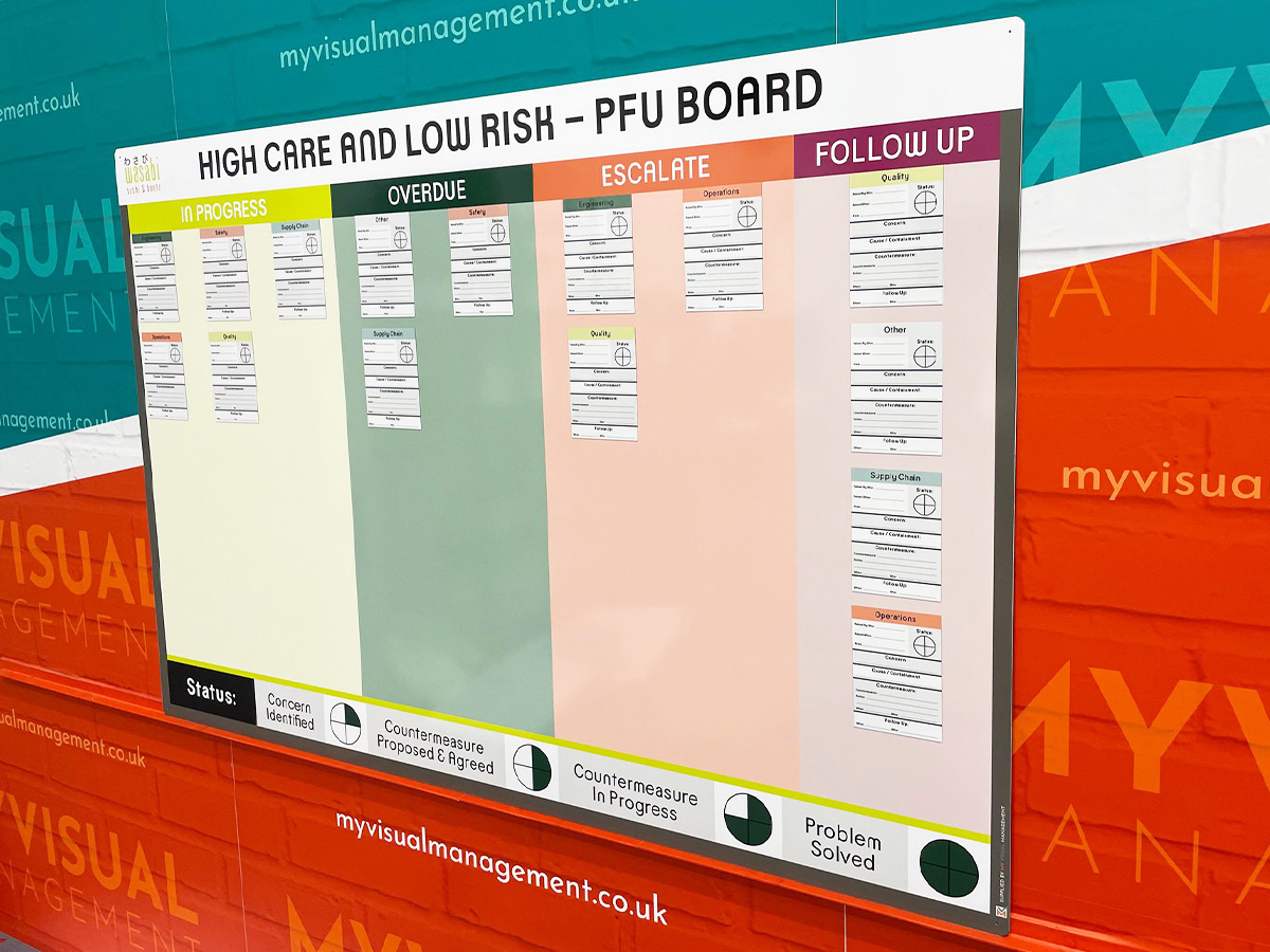 We create visual management boards everyday. As a result we have plenty of experience. We work for organisations in food production, the power industry, national rail, pharmaceuticals, education, healthcare, packaging and distribution.