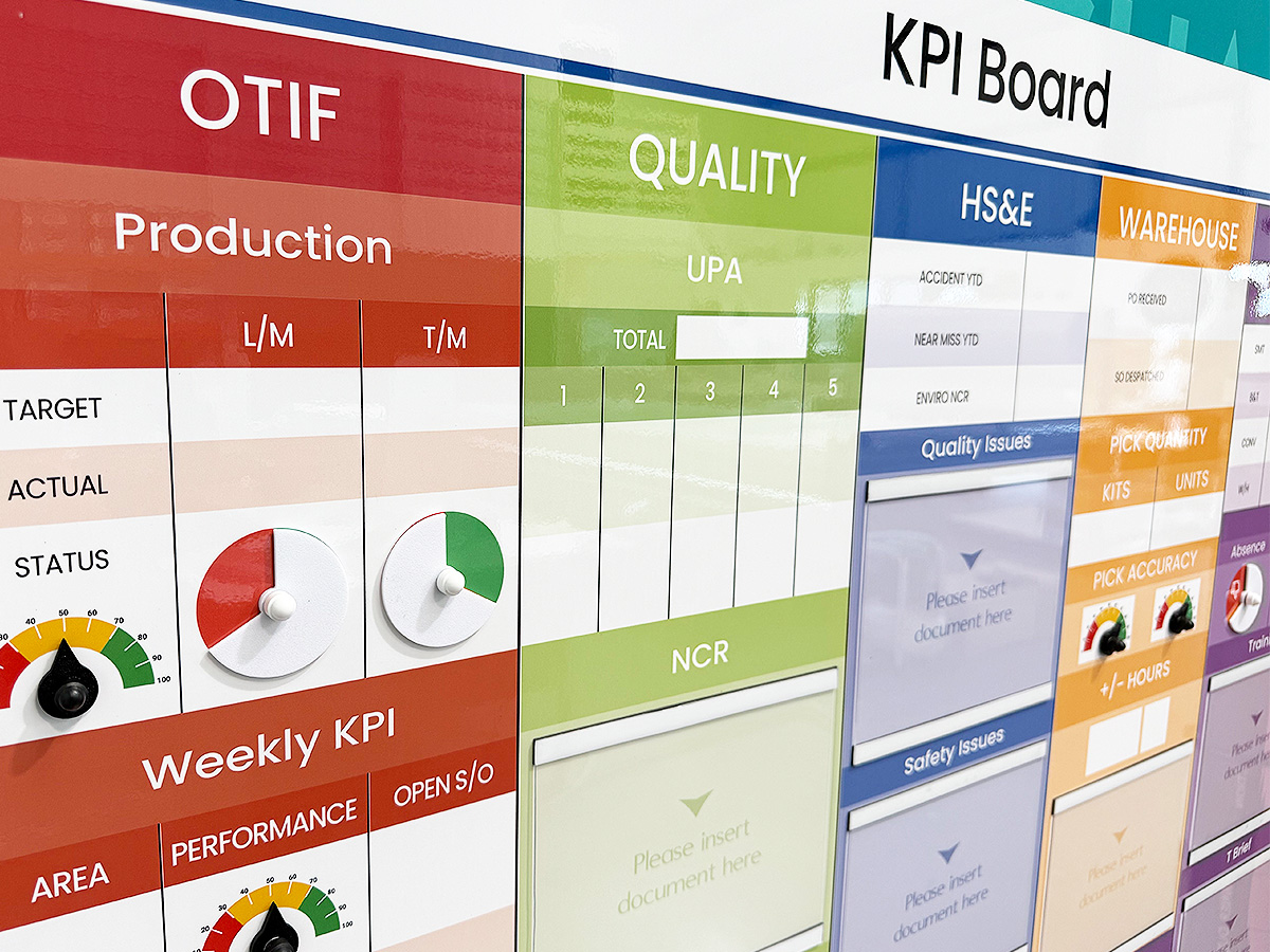 In short, your own KPI board represents your process visually. Likewise, you choose targets to how. Similarly, you decide how your board functions. Therefore, we support you to make the perfect Key Performance Indicator boards for your workplace. In other words, we custom make each and every one to meet your exact needs.