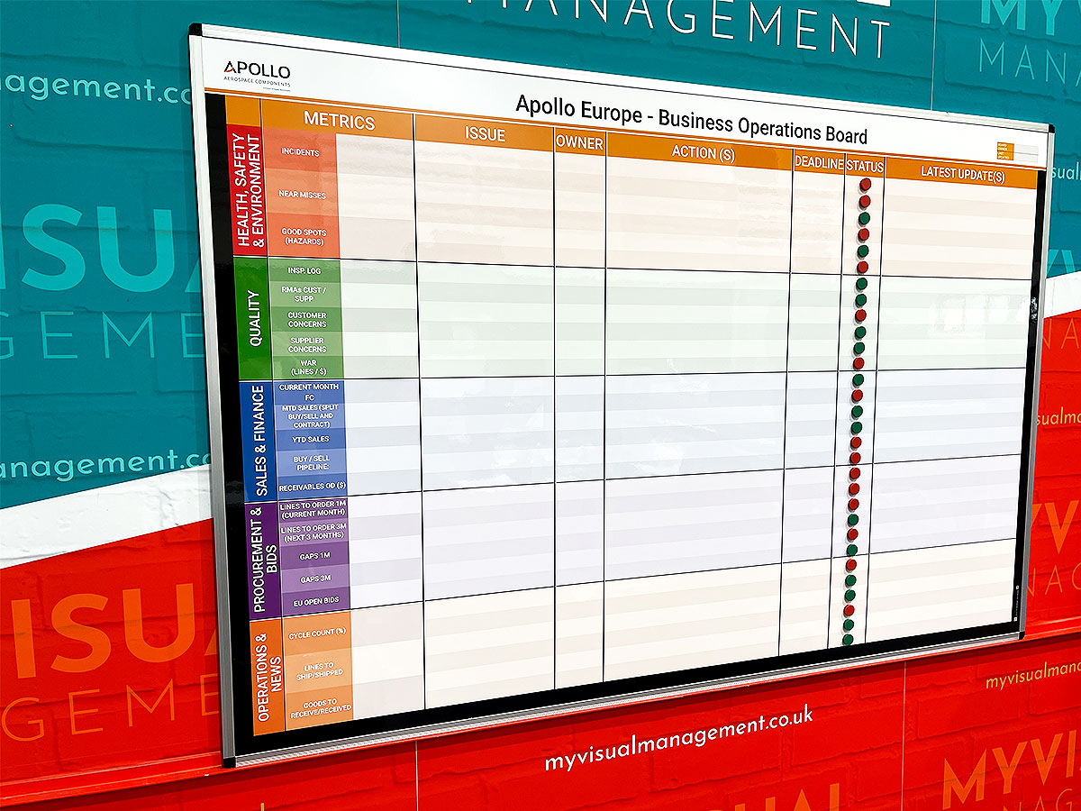 We create visual management boards everyday. As a result we have plenty of experience. We work for organisations in food production, the power industry, national rail, pharmaceuticals, education, healthcare, packaging and distribution.