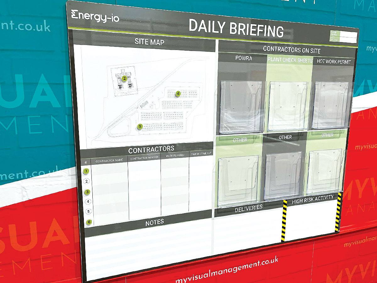 In short, make all the steps in your permit to work system visual. Likewise, add dry wipe labels to the multi-sheet document holders. Similarly, log if a contractor is In (green) or Out (red) by adding status sliders to your permit board