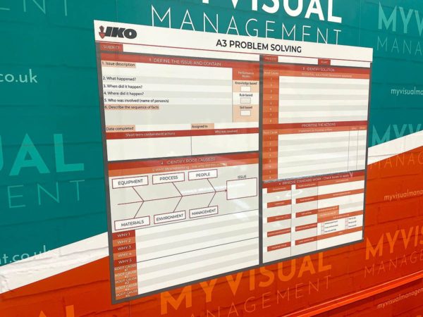 To support consistent and effective problem solving, the campaign included a comprehensive A3 problem solving board. This board guides teams through a structured approach to understanding problems and therefore identifying sustainable solutions.