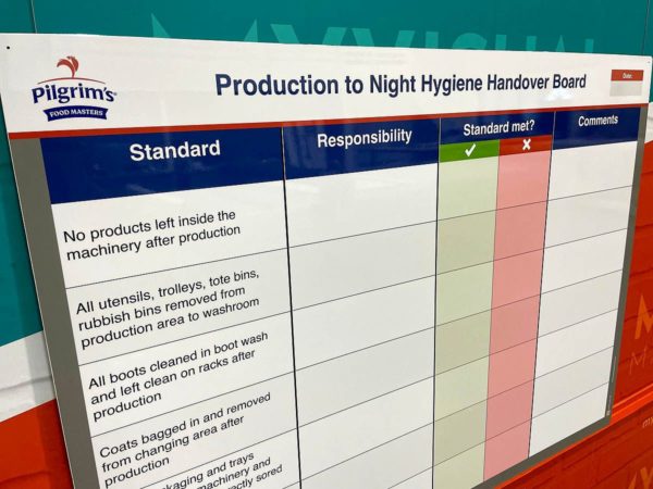 In many food production environments, including those operating to standards such as BRCGS or SALSA, clear and consistent processes are essential. Visual systems can help reinforce these standards by making expectations visible and supporting routine compliance across teams.