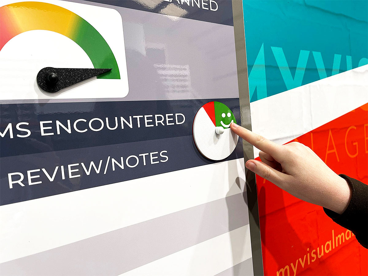 Secondly, any alternative status system relying on magnetic updates is more time consuming. In that situation, the line operator might have to walk from the line to collect the magnet to make an update. Ultimately, this could cost time away from the line. Without a doubt, this time would add up across a week. Therefore, this hanging status dial removes the need to leave the line. Finally, it makes status visual and accessible.