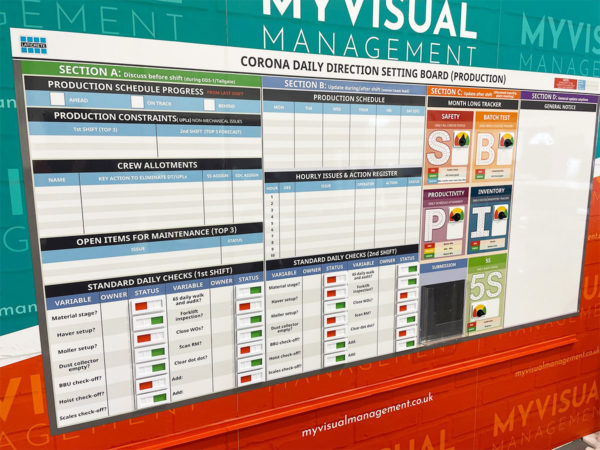 We create visual management boards everyday. As a result we have plenty of experience. We work for organisations in food production, the power industry, national rail, pharmaceuticals, education, healthcare, packaging and distribution.